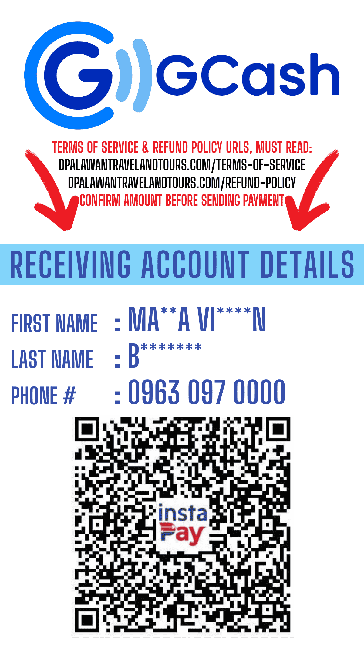 GCash is accepted only as a convenience payment option. Because most local tour operators, boatmen, drivers, and service providers in Palawan require cash settlement, GCash payments may still need to be withdrawn or encashed before supplier payment can be completed.